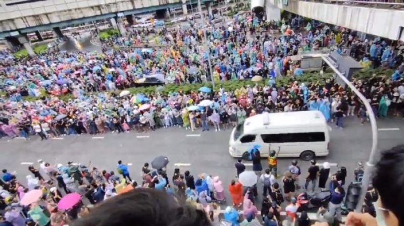 ม็อบเปิดทางรถฉุกเฉิน ขับผ่านจุดชุมนุม อย่างรวดเร็ว