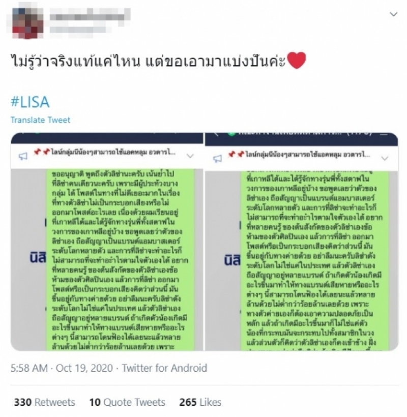 ล่าสุดในทวิตเตอร์ได้มีการติดเเฮชเเท็ก #LISA พร้อมกับมีเเฟนคลับทีรักเเละพร้อมสนับสนุนได้ออกมาโพสต์ถึงสาเหตุที่ลิซ่านั้นอาจจะออกมา call out