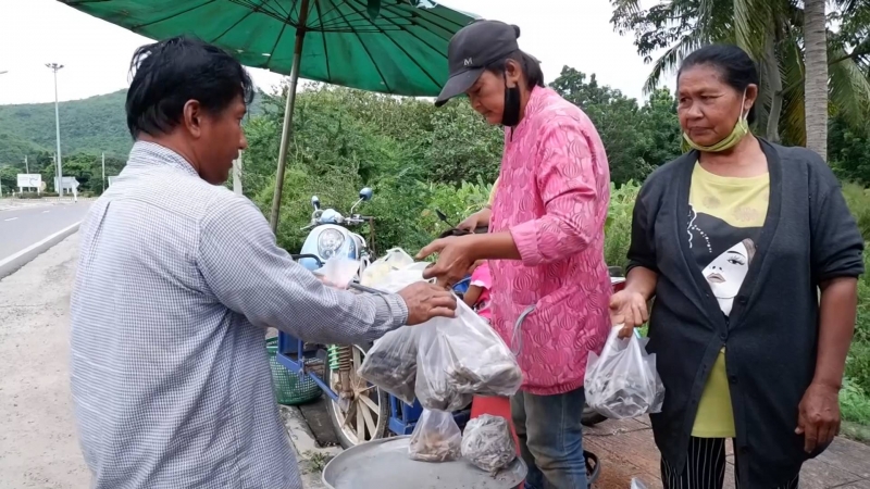 ด้าน นางทุเรียน เขียวขำ อายุ 67 ปี คนขายเห็ด กล่าวว่า เห็ดชุดนี้เป็นชุดแรก ที่ออกในปีนี้ และมีราคาค่อนข้างสูง โดยเห็ดโคนที่นำมาขายไม่ได้รับใครมา เพราะสามีกับลูกๆจะช่วยกันออกไปหามากันตั้งแต่เวลา 02.00 น. เมื่อได้เห็ดมากพอ ก็จะนำมาเขามาวางขาย ซึ่งวันหนึ่งจะสามารถหาได้วันละ 2-3 รอบ