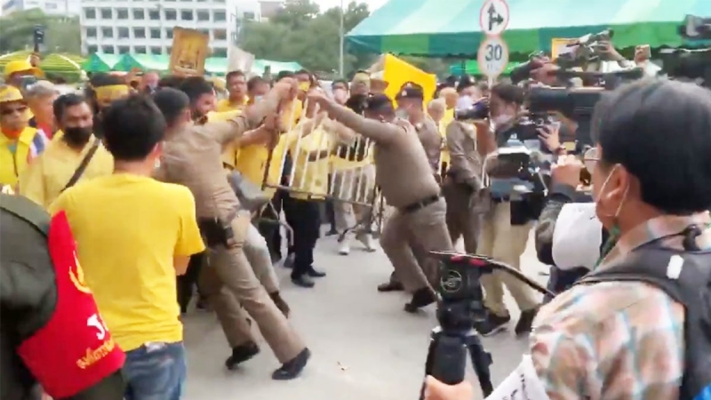 จากกรณี กลุ่มรามคำแหงเพื่อประชาธิปไตย ซึ่งเป็นกลุ่มนักศึกษากำลังเตรียมชุมนุมภายในมหาวิทยาลัย โดยขณะเตรียมรถเครื่องขยายเสียงอยู่นั้น มีกลุ่มผู้ชุมนุมปกป้องสถาบันที่สวมใส่เสื้อสีเหลืองซึ่งได้ชุมนุมบริเวณนี้ก่อนในช่วงบ่าย จากนั้นกลุ่มผู้ชุมนุมปกป้องสถาบันได้วิ่งกรูเข้าใส่กลุ่มรามคำแหงเพื่อประชาธิปไตย รวมทั้งทุ่มลำโพงใส่ และมีบางจังหวะวิ่งไล่ นศ.จนต้องหนีเอาตัวรอดออกไป