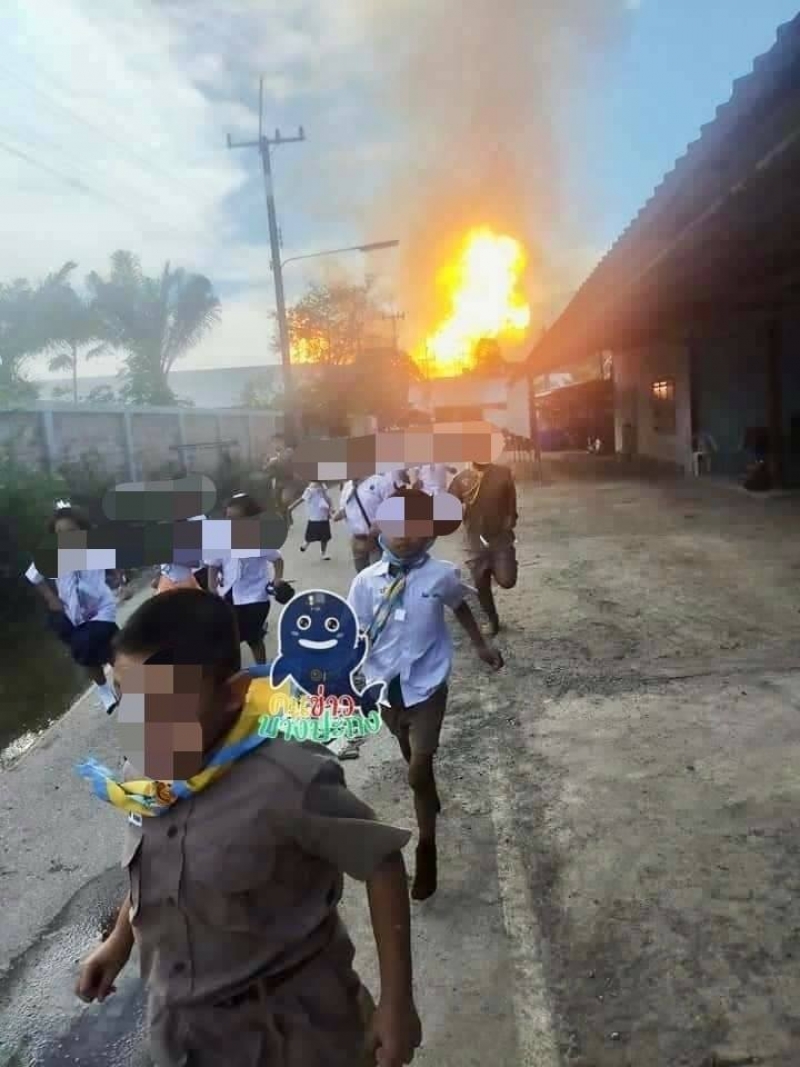 #นาทีหนีตาย เป็นภาพของเด็กนักเรียน ที่กำลังวิ่งหนีตาย จากการระเบิดของท่อก๊าซธรรมชาติ ในพื้นที่เปร็ง อ.บางบ่อ จ.สมุทรปราการ เครดิตภาพ : MP Mayzy
