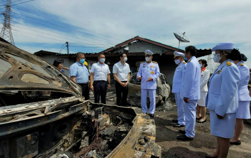 จากนั้น องคมนตรี ได้ลงพื้นที่ดูสถานที่เกิดเหตุ และให้คำแนะนำแก่หน่วยงานที่เกี่ยวข้องในการให้ความช่วยเหลือ และเยียวยาผู้ได้รับผลกระทบต่อไป ตลอดพูดคุยให้กำลังใจ เสร็จแล้ว องคมนตรีเดินทางไปยังโรงพยาบาลรวมชัยประชารักษ์ และโรงพยาบาลบางบ่อ อำเภอบางบ่อ จังหวัดสมุทรปราการ เชิญถุงพระราชทาน เครื่องนอน ไปมอบกล่าวแก่ผู้ได้รับบาดเจ็บจากอุบัติภัยดังกล่าว พร้อมทั้งเชิญพระราชกระแสทรงทรงห่วงใย และพระราชทานกำลังใจของพระบาทสมเด็จพระเจ้าอยู่หัว และสมเด็จพระนางเจ้า ฯ พระบรมราชินี ไปกล่าวให้รับทราบด้วย