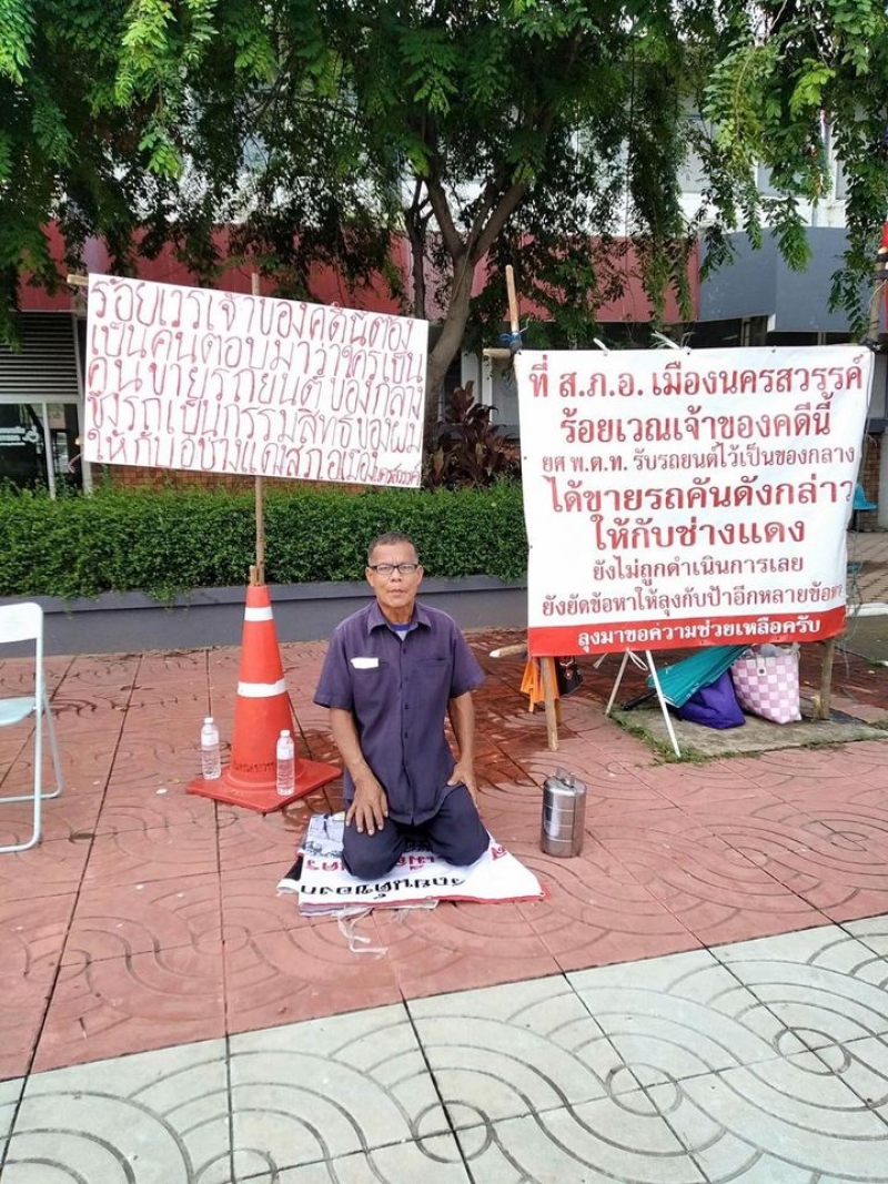 คุณลุง คุณป้า2คนต้องมาตากแดด ตากฝน เพื่อเรียกร้องขอความเป็นธรรมกับการทำงานที่ไม่ได้เรื่องของตำรวจ