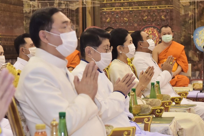 ขณะที่ เมื่อคืน 24 ตุลาคม 2563 ที่ พระอุโบสถวัดพระเชตุพนวิมลมังคลาราม พลเอก ประยุทธ์ จันทร์โอชา นายกรัฐมนตรี เป็นประธานฝ่ายฆราวาส ในพิธีเจริญพระพุทธมนต์โดยสมเด็จพระมหารัชมงคลมุนี กรรมการมหาเถรสมาคม เป็นประธานฝ่ายสงฆ์ พร้อมด้วยพระพรหมเสนาบดี กรรมการมหาเถรสมาคม พระธรรมรัตนากร เจ้าอาวาสวัดพระเชตุพนวิมลมังคลาราม และพระเถรานุเถระ ร่วมเจริญพระพุทธมนต์