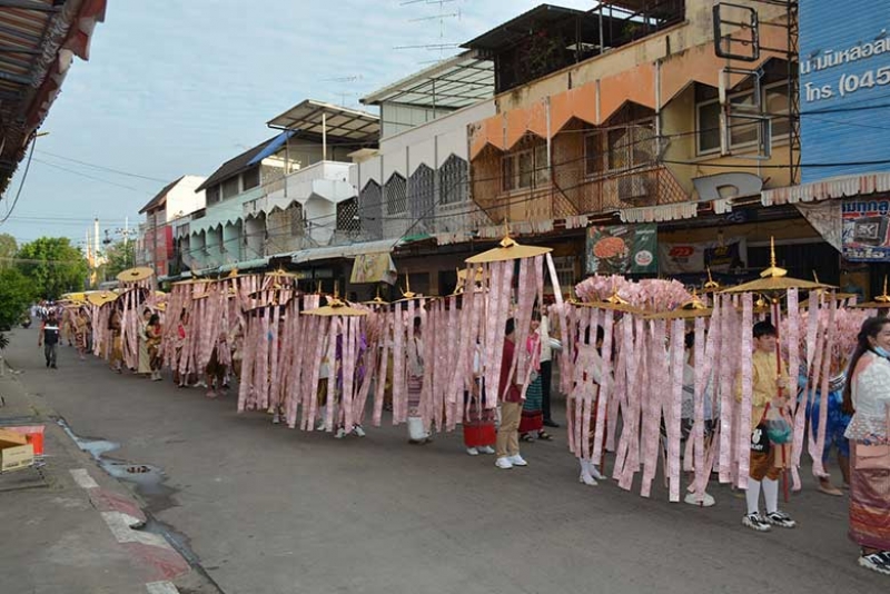 โดยคณะอาจารย์และนักศึกษาทุกคนพากันแต่งกายด้วยชุดไทย ถือต้นเงินกฐินจำนวน 69 ต้น ๆ ละ 30,000 บาท และองค์กฐิน มีขบวนแห่รถสามล้อดอกลำดวน จำนวน 80 คันตกแต่งอย่างสวยงาม เพื่อให้คณะกรรมการสภามหาวิทยาลัยและคณะอาจารย์ที่อาวุโสแต่งชุดไทยได้นั่งบนรถสามล้อ แห่ไปตามถนนทุกสายรอบเขตเทศบาลเมืองศรีสะเกษ