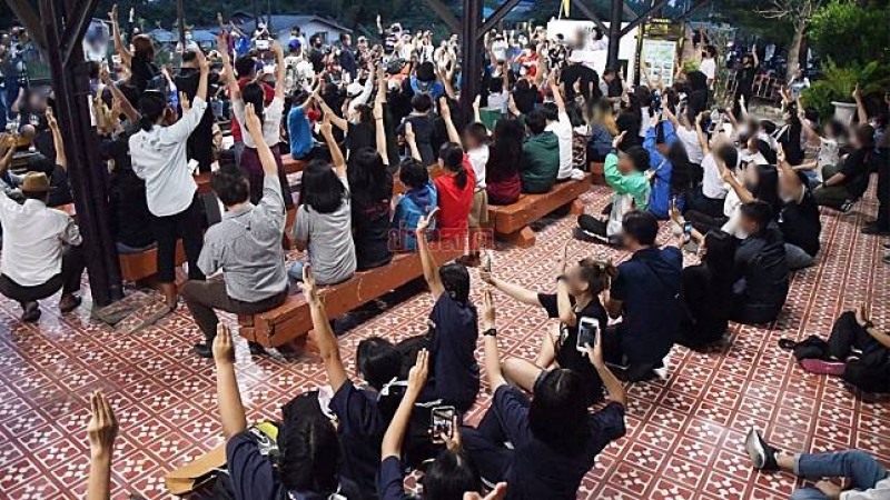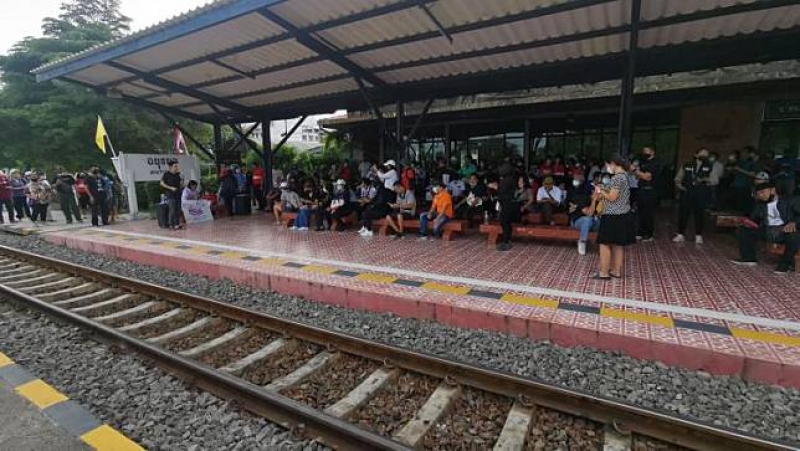 กลุ่มผู้ชุมนุมนั้น ได้มาเฝ้ารอที่สถานีรถไฟอยุธยา จ.พระนครศรีอยุธยา เมื่อถึงเวลา 18.00 น. เพลงชาติดังขึ้น กลุ่มผู้ชุมนุมทั้งหมดก็นั่งลงพร้อมชูสามนิ้ว เพื่อแสดงออกทางสัญลักษณ์ หยุดการใช้ความรุนแรงกับผู้ที่มีความคิดเห็นต่าง