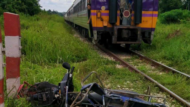 รถไฟชน จยย.พ่วง ดับสลด 3 ราย เผยมีไม้กั้น แต่โดนชาวบ้านถอดออก