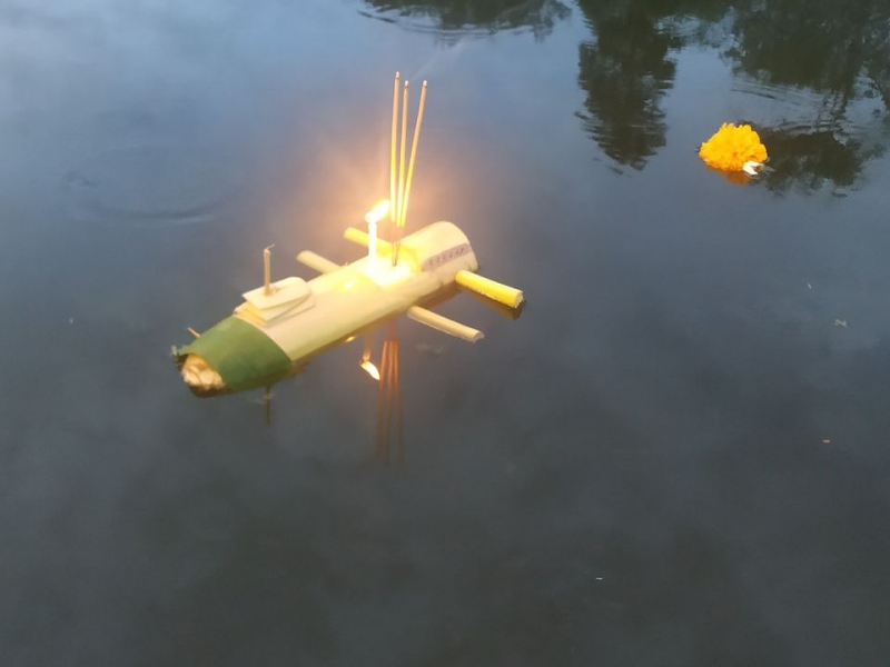 เรียกได้ว่าเป็นอีกหนึ่งเรื่องราว ที่สร้างความฮือฮาเป็นอย่างมาก หลายคนคงจะทราบกันดีอยู่แล้วว่า การลอยกระทง เป็นประเพณีที่มีมาแต่โบราณ แต่ท้องถิ่นแต่ละแห่ง ก็จะมีจุดประสงค์และความเชื่อในการลอยกระทงแตกต่างกันไป เช่น ในเรื่องเกี่ยวกับพระพุทธศาสนา ก็จะเป็นการบูชาพระเกศแก้วจุฬามณีบนสวรรค์ชั้นดาวดึงส์ เป็นบูชารอยพระพุทธบาท ณ หาดทรายริมฝั่งแม่น้ำนัมมทา ซึ่งปัจจุบันคือแม่น้ำเนรพุททาในอินเดีย หรือต้อนรับพระพุทธเจ้า ในวันเสด็จกลับจากเทวโลก เมื่อครั้งไปโปรดพระพุทธมารดา ซึ่งแต่ละคนก็จะมีการนำต้นกล้วยมาทำเป็นกระทง แต่ที่สร้างความฮือฮาก็คือ ชาวโซเชียลต่างพากันทำกระทงเป็นรูปแบบเรือดำน้ำ กลายเป็นอีกหนึ่งสีสันในวันลอยกระทงปีนี้