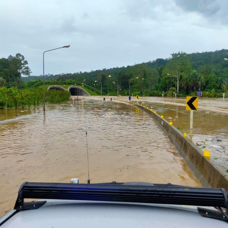 วันที่ 1 พฤศจิกายน ผู้สื่อข่าวรายงานว่า จากกรณีที่อุโมงค์เชื่อมผืนป่าเขาใหญ่- ทับลาน บนทางหลวงหมายเลข 304 สายกบินทร์บุรี- ปักธงชัย มีน้ำท่วมสูงตั้งแต่ด้านในอุโมงค์ ออกมาจนถึงปากทางเข้า ทำให้รถไม่สามารถสัญจรผ่านไปได้ จึงฝากเตือนพี่น้องประชาชน ให้หลีกเลี่ยงเส้นทางนี้
