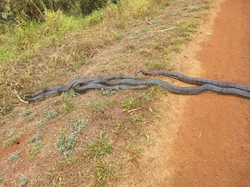 กลุ่มนักศึกษาพบว่า อนาคอนด้าตัวใหญ่ ความยาว 6 - 7 เมตร เลื้อยขึ้นมาจากบึง ข้ามถนน มุ่งหน้าสู่เขื่อน สังเกตได้ว่ามันพยายามหนีงูตัวเล็ก ๆ ที่ตามมาติด ๆ