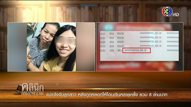 วันที่ 7 พฤศจิกายน 2563 ช่อง 3 รายงานว่า คุณแม่รายหนึ่งได้เดินทางเข้าร้องเรียนกับผู้สื่อข่าว หลังจากถูกลูกสาวหลอกให้โอนเงินให้หลายครั้งรวมกว่า 8 ล้านบาท จนทำให้พ่อเครียดจนผูกคอตาย
