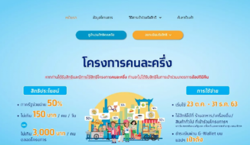2. จำกัดสิทธิไม่เกิน 150 บาท/วัน โดยที่ยอดรวมการใช้สิทธิ “คนละครึ่ง” ไม่เกิน 3,000 บาท ตลอดโครงการ