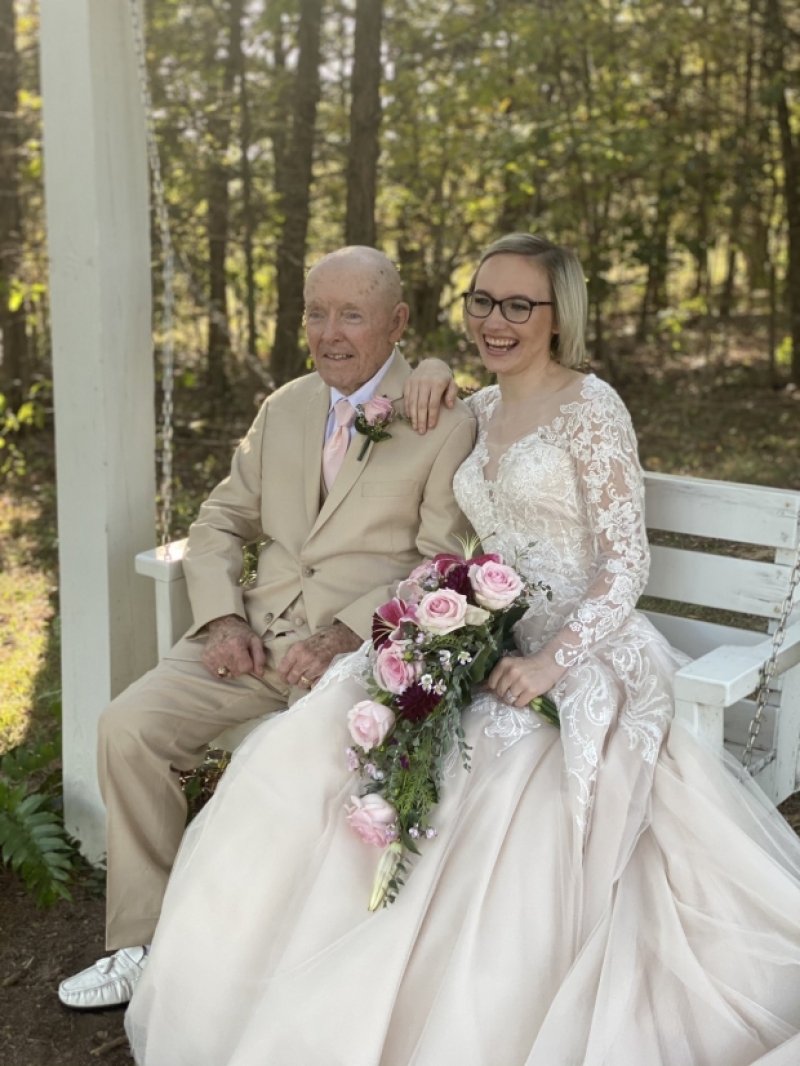 เมื่อถึงวันแต่งงาน คุณปู่ฮอปกินส์มาในชุดสูทหล่อเหลา ด้านโอลีเวียสวมชุดเจ้าสาวสีขาวแสนสวย บรรยากาศในงานเต็มไปด้วยรอยยิ้มที่สดใสของทั้งสอง ซึ่งโอลิเวียได้แบ่งปันช่วงเวลาที่ล้ำค่าด้วยการโพสต์ภาพงานแต่งลงในทวิตเตอร์ด้วย