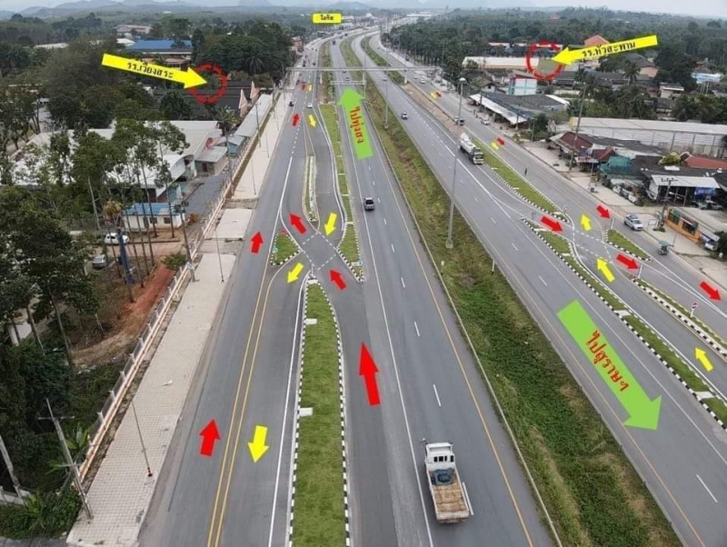 ถนนสายเอเชีย 41 ทางออกสี่แยกเวียงสระ ด้านในเป็นเลนสวน