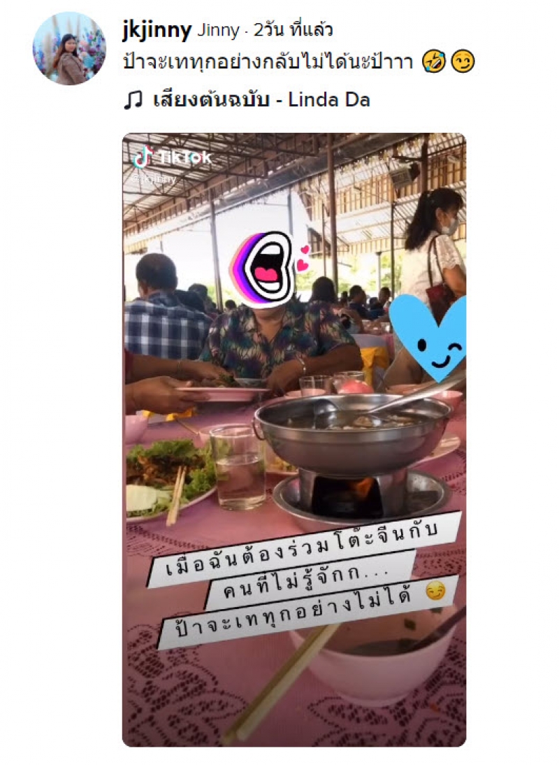 เรียกได้ว่าเป็นอีกหนึ่งเหตุการณ์ ที่หลายๆคนนั้นเคยเจอเลยก็ว่าได้ สำหรับมนุษป้าที่ชอบไปงานเลี้ยงแล้วห่อกลับทั้งๆที่คนร่วมโต๊ะยังทานไม่อิ่ม เช่นเดียวกันกับผู้ผุ้ใช้ tiktok คนนี้ โดยได้ออกมาโพสต์เรื่องราว สำหรับ คลิปคุณป้าคนหนึ่งได้ไปร่วมงานที่มีการจัดงานเลี้ยงเป็นโต๊ะจีน แต่ป้าพกถุงมาด้วย แล้วเทเอาอาหารบนโต๊ะใส่ถุงห่อกลับด้วย ทำเอาสาวผู้ใช้ชื่อ jkjinny อดที่จะถ่ายคลิปเอาไว้ไม่ได้ โดยได้โพสต์ระบุว่า