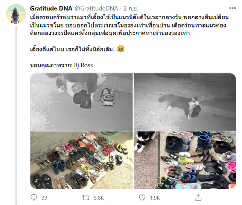 เมื่อครอบครัวพบว่าแมวที่เลี้ยงไว้เป็นแมวนิสัยดีในเวลากลางวัน พอกลางคืนเปลี่ยนเป็นแมว ขโมย ชอบออกไปตระเวณขโมยรองเท้าเพื่อนบ้าน เดือดร้อนทาสแมวต้องติดกล้องวงจรปิดและตั้งกลุ่มเฟสบุคเพื่อประกาศหาเจ้าของรองเท้า เลี้ยงดีแค่ไหน เธอก็ไม่ทิ้งนิสัยเดิม