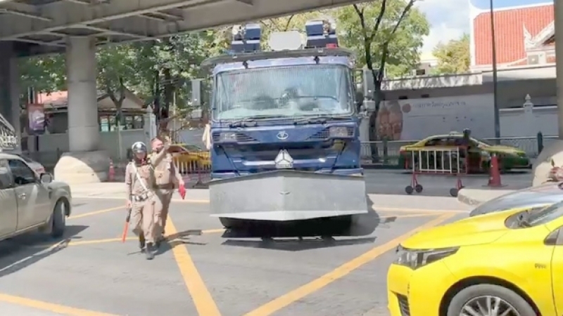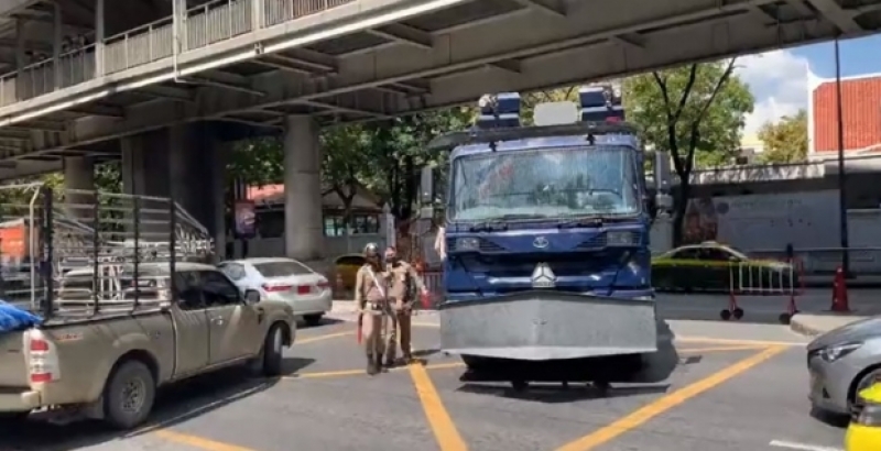 ล่าสุดเวลา 12.50 น. บริเวณถนนพระราม 1 หน้าสำนักงานตำรวจแห่งชาติ ใกล้กับแยกราชประสงค์ เจ้าหน้าที่ได้เตรียมรถฉีดน้ำแรงดันสูงมาจอดอยู่บริเวณเกาะกลางถนน