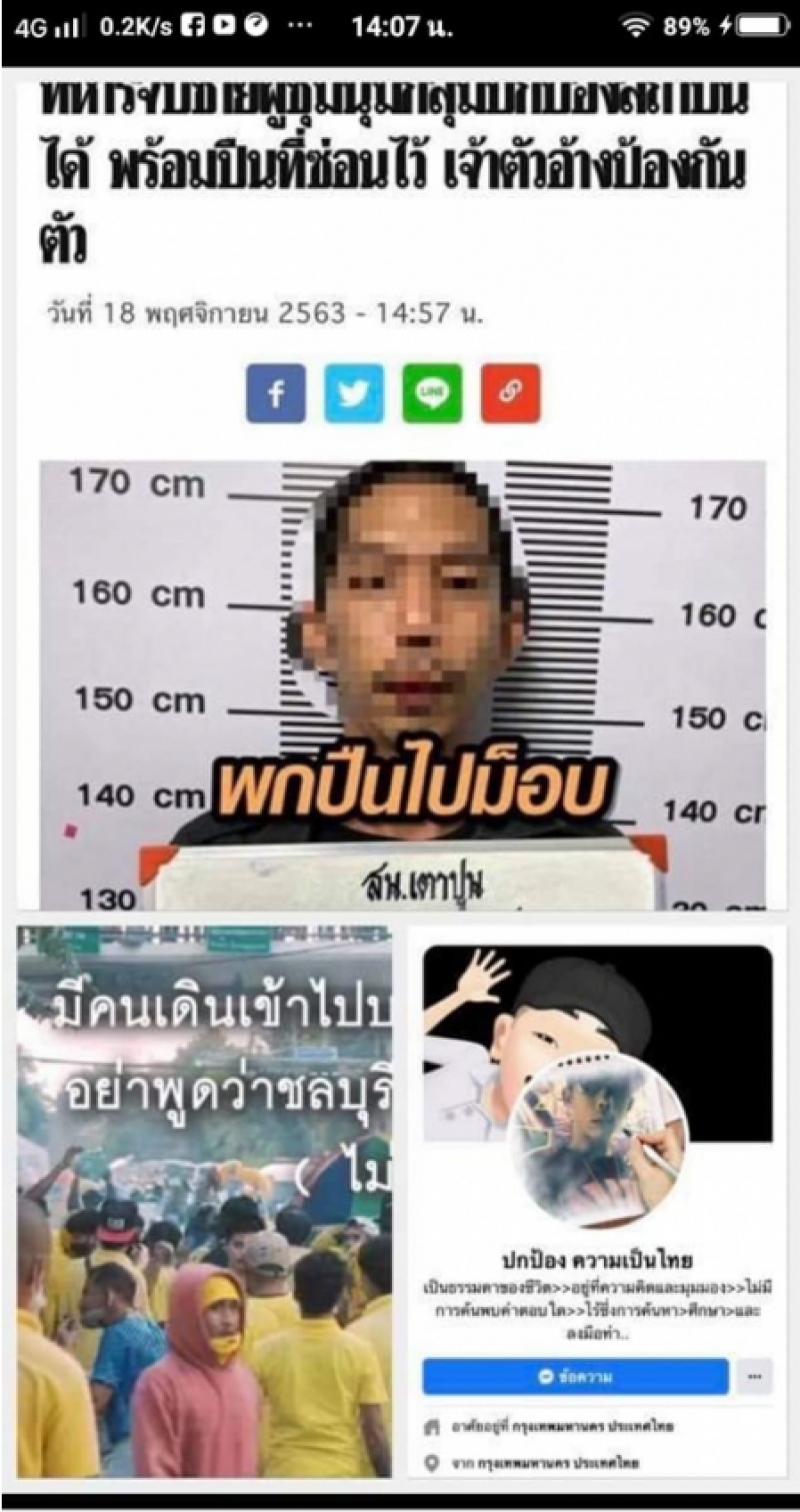 ขณะที่ นายวีระ สมความคิด ได้โพสต์ภาพที่ระบุว่าเป็นหลักฐานว่าชายเสื้อกันฝนสีชมพูเป็นคนที่มาจากกลุ่มเสื้อเหลือง โดยระบุว่า