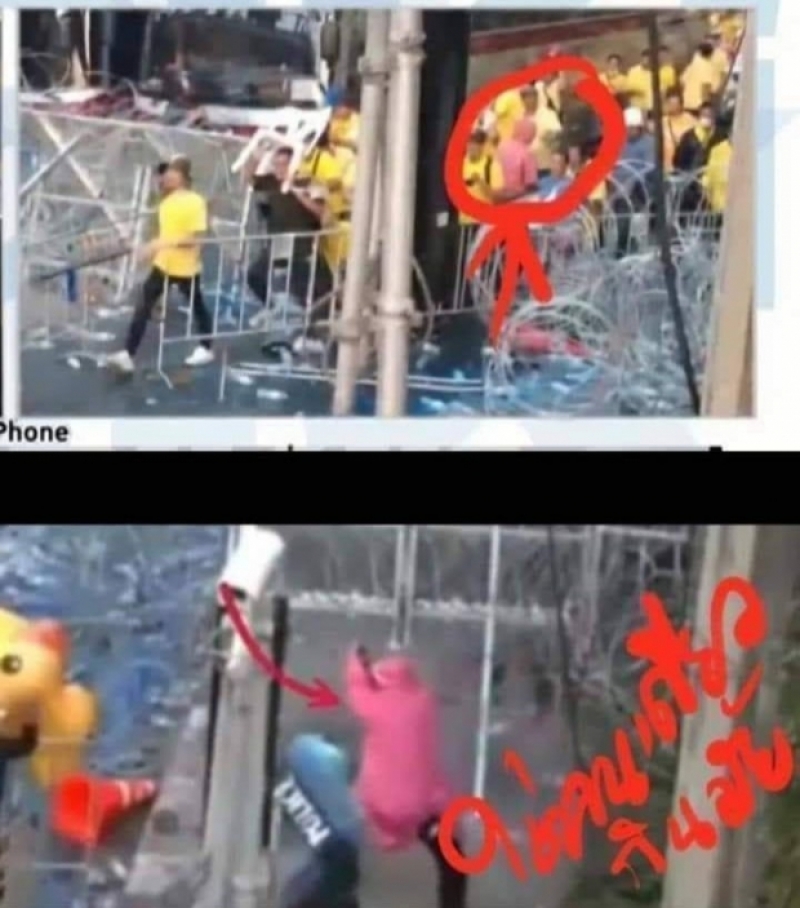 หลักฐานนี้ชัดเจนเพียงพอไหมที่จะยืนยันว่าชายใส่เสื้อสีชมพูเป็นพวกเดียวกันกับเสื้อเหลือง ที่เข้ามาสร้างสถานการณ์ เพื่อโยนความผิดให้กับกลุ่มคณะราษฎร