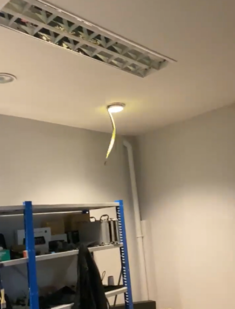 เป็นอีกหนึ่งเรื่องราว ที่บอกเลยว่าเป็นใครก็ไม่อยากเจอ ผู้ใช้เฟซบุ๊กชื่อ น้าหนึ่ง ลุยเดะว๊ะ ได้มีการโพสต์คลิปและเรื่องราวเหตุการณ์ว่าขณะที่ตนเองนั้นกำลังนั่งทำงานอยู่ได้ยินเสียงกุกกักบนฝ้าเพดาน เลยหยิบกล้องมาตั้งถ่ายเล่นๆ ตอนแรกนึกว่าหนู แต่ปรากฏว่าเป็นงูพุ่งตัวดันไฟเพดานออกมา