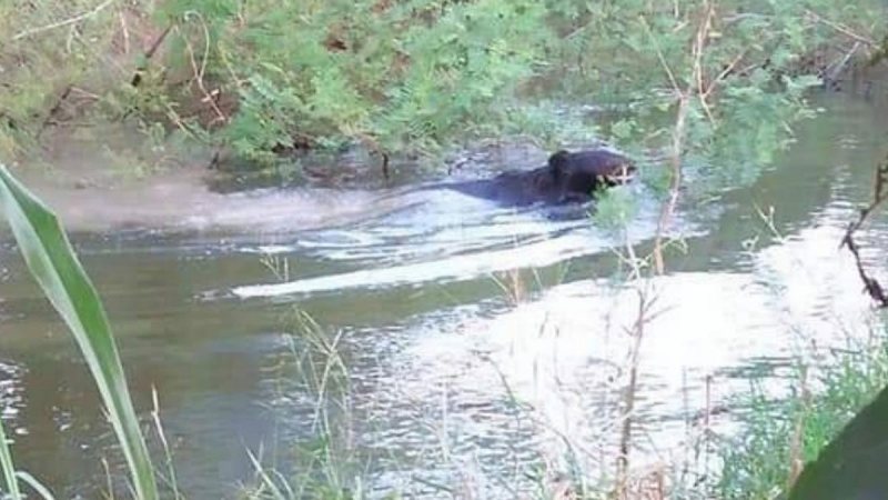 นายกิตติพงษ์ แสนบุ่งค้อ อายุ 55 ปี ผู้ที่พบหมีควายเป็นคนแรก กล่าวว่า ตนมาที่นาข้าวและกำลังให้อาหารปลาในสระ ระหว่างนั้นได้สังเกตเห็นสัตว์รูปร่างคล้ายหมูป่าแต่ตัวดำและใหญ่มากห่างจากตนเองประมาณ 150 เมตร แต่อยู่ในป่ายางพารา