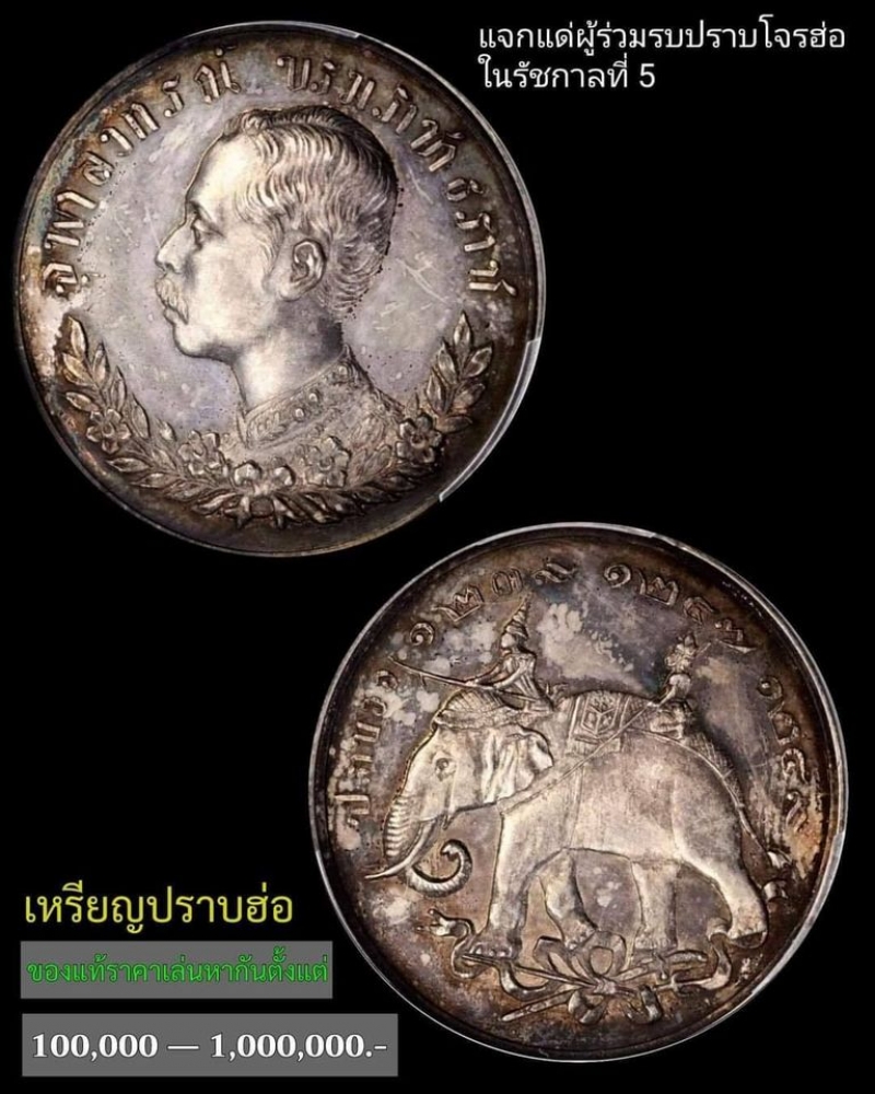 ทั้งนี้ข้อมูล เหรียญปราบฮ่อ เหรียญที่ระลึก รัชกาลที่ 5 ทรงแจกเป็นเครื่องราชอิสริยาภรณ์แก่ทหาร โปรดเกล้าฯ ให้สร้างเหรียญราชอิสริยาภรณ์ขึ้น เพื่อเป็นบำเหน็จความดีความชอบแก่ผู้ไปราชการสงครามปราบฮ่อ ผู้ที่ไปราชการสงคราม ปราบโจรฮ่อที่รุกล้ำพระราชอาณาเขตทางเหนือ หรือบริเวณประเทศลาวในปัจจุบัน ซึ่งในสมัยนั้นยังเป็นเมืองประเทศราชของสยาม