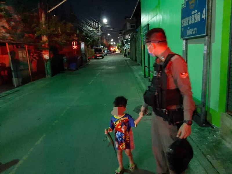 ภาพน่ารัก เมื่อตำรวจ เจอเด็ก 2 ขวบ เดินอยู่กลางดึกในซอยเปลี่ยวคนเดียว
