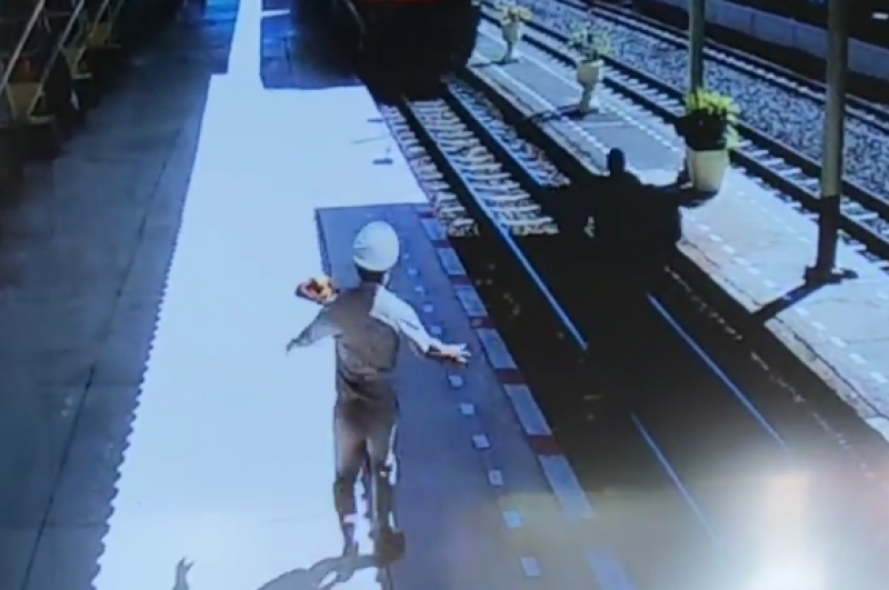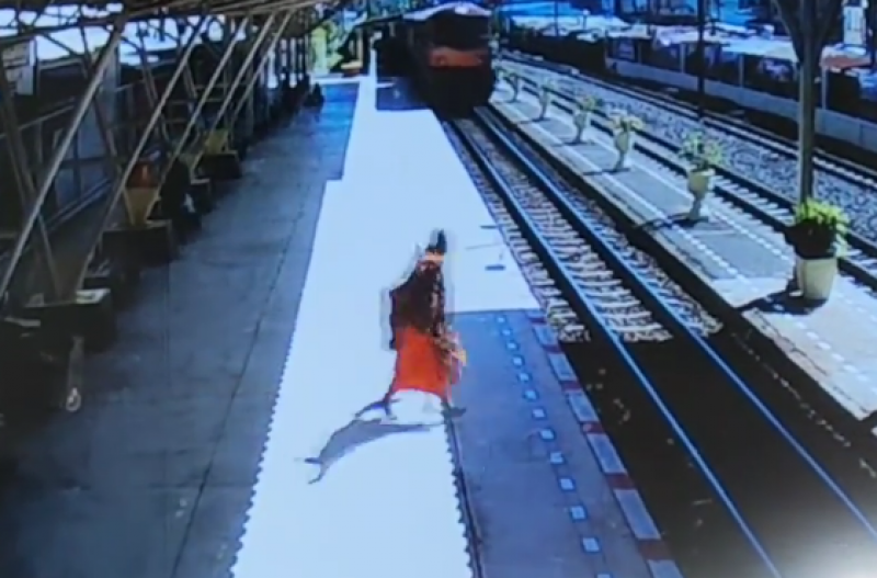 นาทีระทึก พระกระโดดขวางรถไฟ