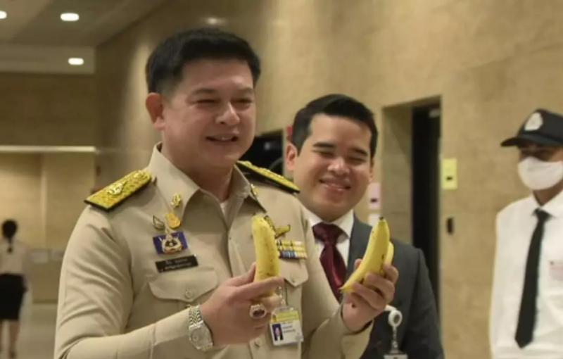 ดังนั้น วันนี้ถ้าผมเจอส.ส.เต้ ก็จะเอากล้วยหอมที่ถือมาไปให้ เผื่อไม่ได้รับประทานข้าวเช้ามา เดี๋ยวจะหิว มาสภาฯไม่มีอะไรกิน หรือหิวมาจากที่ไหนก็ไม่รู้ ก็กินกล้วย เผื่อจะได้มีสติปัญญาบ้าง ซึ่ง 3 ลูกนี้น่าจะพอ ถ้าไม่พอก็ไปหาเอาเอง นายสิระ กล่าว