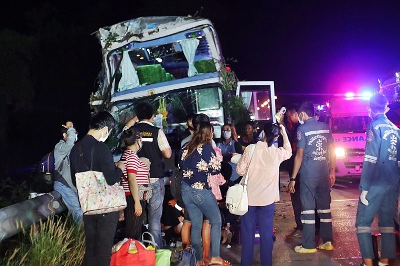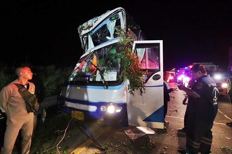 ด่วน รถทัวร์ เสียหลักชนต้นไม้ 20ชีวิตร้องลั่น เจ็บอื้อ