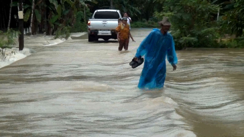 สถานการณ์น้ำท่วมในหลายพื้นที่ของจังหวัดพัทลุง เนื่องมาจากฝนได้ตกติดต่อกันมาตั้งแต่วันที่ 25 พฤศจิกายนที่ผ่านมา ทำให้มวลน้ำที่สะสมบนเขาบรรทัดประกอบกับน้ำฝนที่ตกกระจายในทุกพื้นที่ ไหลเข้าท่วมบ้านเรือนของประชาชน และท่วมถนนในหมู่บ้านที่ใช้สัญจรจำนวนหลายสาย ซึ่งชาวบ้านเร่งหากระสอบทรายกั้นน้ำป้องกันน้ำเข้าบ้านกันอย่างโกลาหล เนื่องจากมวลน้ำไหลมาอย่างรวดเร็ว