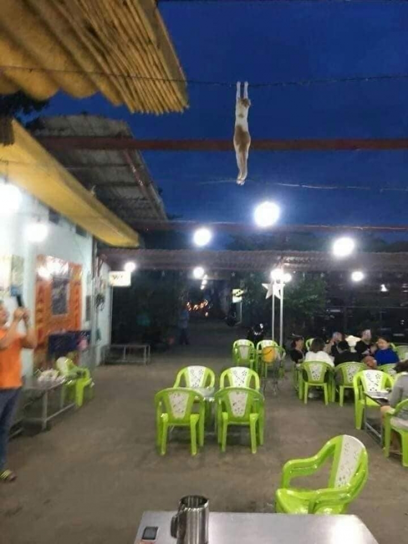 เรียกได้ว่าเป็นอีกหนึ่งเรื่องราวความซุกซนของเจ้าเหมียว ที่สร้างรอยยิ้มในโลกออนไลน์ เมื่อเพจ เจ้าเหมียวพูดว่า ซึ่งเป็นเพจที่รวบรวมภาพความน่ารักของแมว ได้มีการโพสต์ภาพเจ้าเหมียว โดยภาพนี้เป็นภาพหลังจากที่เจ้าเหมียวตัวหนึ่ง เกาะอยู่บนสายไฟในร้านอาหารแห่งหนึ่ง ท่ามกลางผู้คนที่กำลังรับประทานอาหาร สร้างความฮือฮาให้กับคนในบริเวณร้าน ราวกลับว่าเจ้าเหมียวจะต้องการความช่วยเหลือ