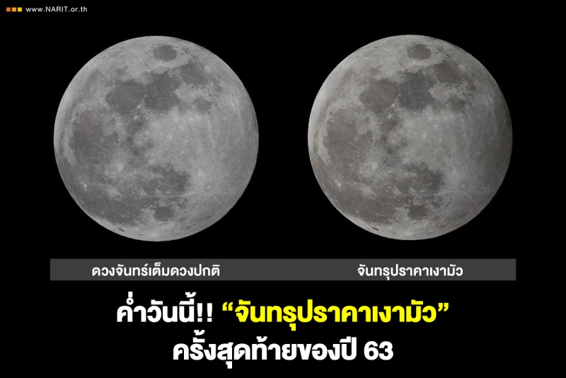 ค่ำวันนี้ จะเกิด จันทรุปราคาเงามัว ครั้งสุดท้ายของปี 63 ค่ำวันที่ 30 พ.ย. 63 จะเกิดปรากฏการณ์ จันทรุปราคาเงามัว โดยประเทศไทยเริ่มสังเกตได้ตั้งแต่ดวงจันทร์ขึ้นจากขอบฟ้าทางทิศตะวันออกเวลาประมาณ 17:49 น. ไปจนถึงเวลา 18:53 น. สังเกตได้ทั่วประเทศ แต่มองด้วยตาเปล่าค่อนข้างยาก เนื่องจากดวงจันทร์โคจรเข้าไปในเงามัวของโลกบางส่วน ไม่ได้ผ่านเข้าไปในเงามืดของโลก ดวงจันทร์จึงไม่เว้าแหว่ง ยังคงมองเห็นดวงจันทร์เต็มดวงแต่มีความสว่างในส่วนที่อยู่ในเงามัวลดลงเล็กน้อยเท่านั้นครับ
