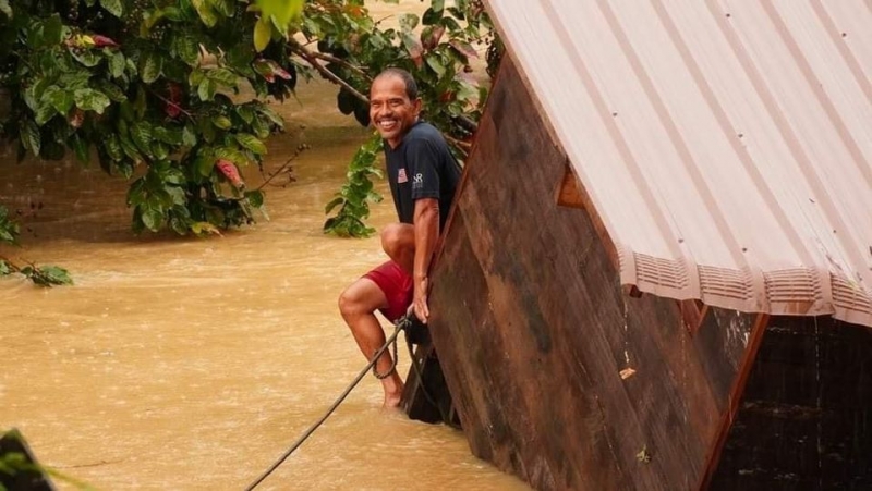 คุณลุงยิ้มสู้ แม้บ้านจะถูกน้ำท่วม ต่อหน้าต่อตา