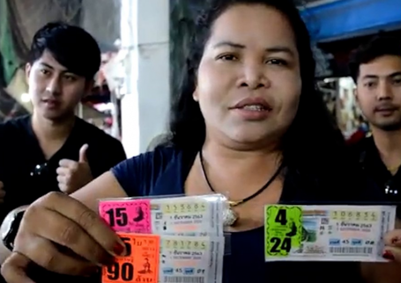 ซึ่งเป็นการทำบุญอย่างหนึ่ง ช่วยซื้อพ่อค้า แม่ค้า และนำไปแจกชาวบ้านนำกลับไปกิน ตนเป็นคนดวงดีเหมือนเดิม งวดนี้ถูกเลขท้าย 84 ซึ่งเป็นเลขอายุของตัวเอง 48 ย่าง 49 ซึ่งหลักในการซื้อรางวัลของตนคือซื้อเลขที่ชอบ เช่นเลขอายุ ปีเกิด เลขทะเบียนรถ เลขโฉนดที่ดิน ถูกทุกงวดจริง ไม่โกหก เงินที่ได้จะนำไปทำบุญเหมาสินค้าที่ตลาดแจกชาวบ้าน ถือว่าเป็นการทำบุญ ได้บุญเหมือนกัน เพราะเราไม่มีเวลาใส่บาตร