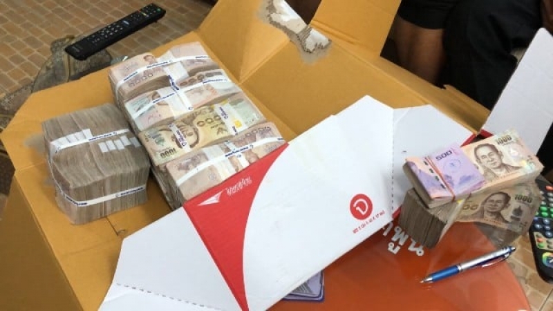 จากการตรวจสอบภายในกล่องพัสดุที่นายสุกันทาถือมาพบธนบัตรใบละ 1,000 บาท จำนวน 5 มัด นับได้รวมกันจำนวน 5,490,000 บาท และธนบัตรใบละ 500 บาท นับได้จำนวน 4,500 บาท รวมเป็นเงินทั้งหมด 5,494,500 บาท นอกจากนี้ยังพบสมุดบัญชีเงินฝากของธนาคารฯชื่อของนายสุกันทา มียอดบัญชีเงินหมุนเวียนกว่า 100 ล้านบาท