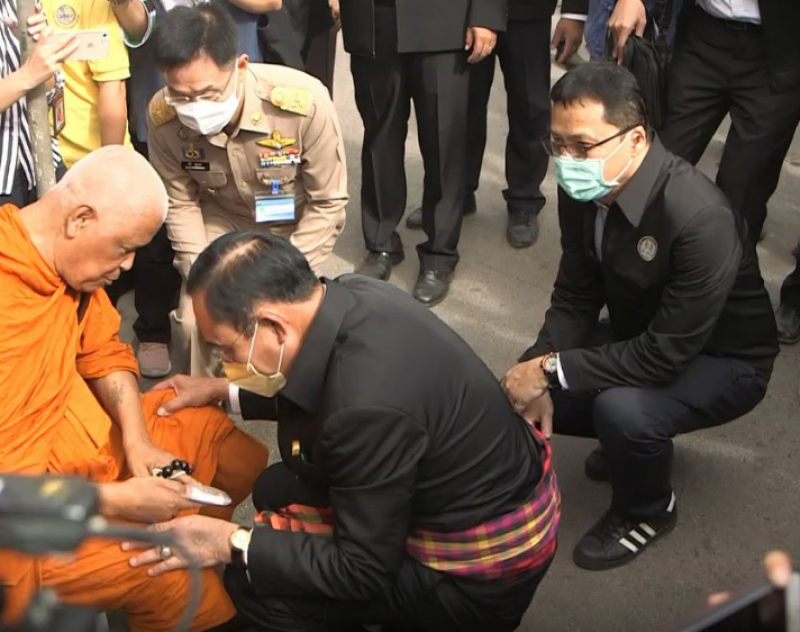 นายกฯ ยิ้มร่า หลวงพ่อมอบตะกรุด เป็นกำลังใจให้รอดคดี