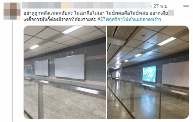 แต่จากสถานการณ์ทางการเมืองที่ผ่านมา เหล่าแฟนคลับของศิลปินต่างๆ ได้ออกแคมเปญ ร่วมกันประกาศจุดยืน ให้เลิกสนับสนุนการซื้อป้ายโฆษณาบน BTS และ MRT เนื่องจากเหตุการณ์เมื่อเดือนตุลาคมที่ผ่านมา ได้เกิดเหตุการณ์ที่ BTS และ MRT ประกาศหยุดให้บริการบางสถานี บางช่วงเวลา เพื่อสกัดการเดินทางของกลุ่มผู้ชุมนุมเรียกร้องประชาธิปไตย