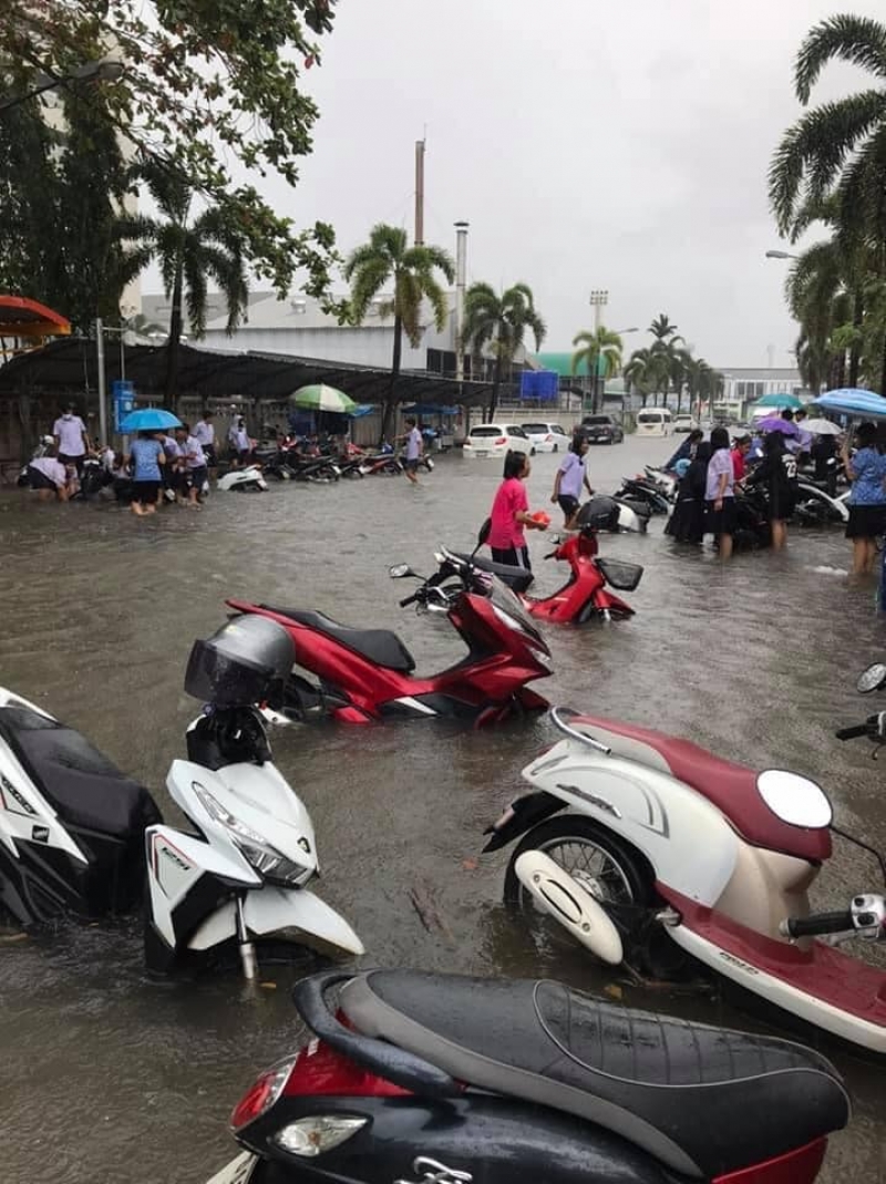ขณะเดียวกันที่โรงเรียนสอาดเผดิมวิทยา ต.ท่าตะเภา อ.เมือง มีน้ำท้วมขังสูงบริเวณ โดยทางคณะครูและนักเรียนได้ออกมาเคลื่อนย้ายรถของนักเรียนเข้าไปจอดในโรงเรียนและบนฟุตปาธบ้างบางส่วน ซึ่งเป็นการแก้ไขเฉพาะหน้าไม่ให้เกิดการเสียหายทางทรัพย์สินของนักเรียน ส่วนที่โรงเรียนศรียาภัย และอาชีวะชุมพร มีน้ำท่วมขังสูงเช่นกัน