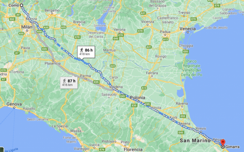 เมื่อหนึ่งสัปดาห์ก่อนเขาได้ทะเลาะกับภรรยาอย่างหนัก และมันทำให้เขาหัวเสียเป็นอย่างมาก จึงทำให้เขาตัดสินใจออกจากบ้านไปเดินเล่น เพื่อสงบสติอารมณ์ของตนเอง เขาพยามเดินไปเรื่อยๆ พยายามทำให้สมองโล่ง เขาเดินไปแบบไม่หยุด ไม่มีจุดหมาย และไม่ได้ใช้ขนส่งสาธารณะใดๆ ทั้งสิ้น เขาเพียงแค่เดินไปเรื่อยๆ ซึ่งบ้านของชายคนนี้อยู่ที่เมืองโคโม ตอนเหนือของมิลาน และเขาก็เดินตามทางมาเรื่อยๆ จนมาเจอกับเจ้าหน้าที่ตำรวจที่เมืองชายฝั่งอย่างจิมาร์รา รวมระยะการเดินเท้าในครั้งกว่า 420 กิโลเมตรในเวลาเพียง 7 วัน หรือเฉลี่ยที่วันละ 60 กิโลเมตรต่อวัน