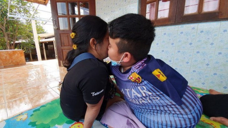 ส่วนนางคำหล้า วรรณไชย อายุ 43 ปี แม่ของน้องแมนยู ผู้พิการทางสายตา บอกว่าน้องกลับมาจากโรงพยาบาลเมื่อวานตอนเย็น ดีใจมากและนั่งรอรับลูก เมื่อเจอหน้าได้ยินเสียงน้องแมนยูเรียกแม่ดีใจสุดๆ น้องวิ่งมาหาและสวมกอด และมีการสอบถามถึงบาดแผลที่แขนว่าเจ็บไหม แต่น้องแมนยูบอกว่าไม่เจ็บสู้ๆ ส่วนข้างบ้านตอนนี้มีการต่อเติมบ้านเพื่อให้เป็นที่อยู่ของน้องแมนยู เพื่อสะดวกในการที่จะไม่ต้องเดินขึ้นบ้าน และบ้านก็คับแคบกลัวน้องจะเดินแล้วหกล้ม เพราะน้องยังต้องรักษาแขนอีกนาน