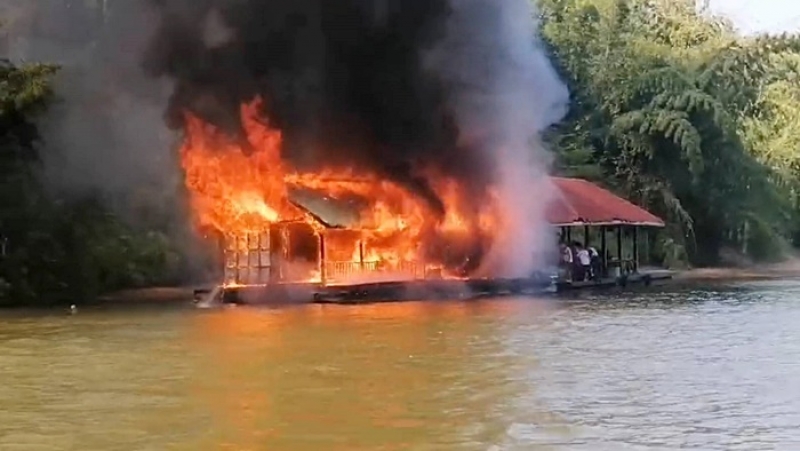 ด่วน ไฟไหม้แพไทรโยค ขณะพานักท่องเที่ยว 30 ชีวิต ล่องแพ