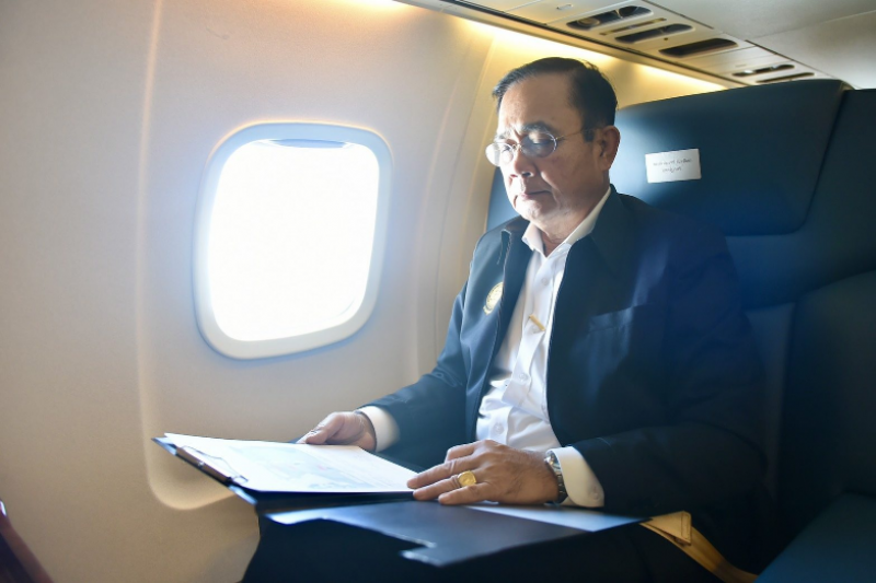 ทีมงานเผยภาพ นายกฯ นั่งคิดงาน บนเครื่องบิน ขณะลงพื้นที่น้ำท่วม