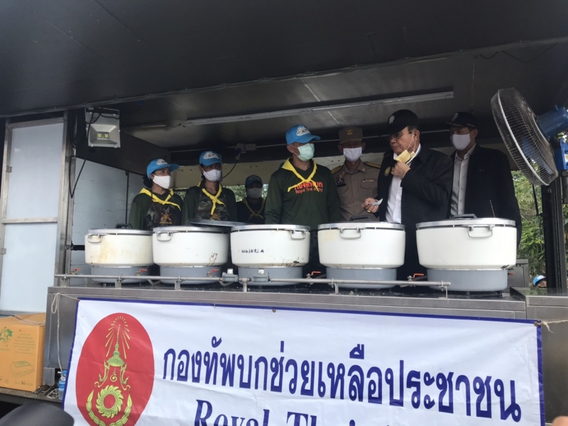 โดยเมื่อนายกรัฐมนตรีเเละคณะเดินทางมาถึง ก็ได้เดินขึ้นไปชิมข้ามหอมมะลิจากครัวพระราช พร้อมเดินพูดคุยเจ้าหน้าที่ พร้อมทั้งเยี่ยมชมบูธความเสียหายจากอุทกภัย การช่วยเหลือเฉพาะหน้า และแผนการช่วยเหลือระยะยาวของส่วนราชการที่เกี่ยวข้อง อาทิ สำนักงานป้องกันและบรรเทาสาธารณภัยจังหวัด, ปศุสัตว์จังหวัด, เกษตรจังหวัด, แขวงการทาง, กรมชลประทาน ก่อนเข้ารับฟังบรรยายสรุปสถานการณ์อุทกภัยจาก นายไกรศร วิศิษฎร์วงศ์ ผู้ว่าราชการจังหวัดนครศรีธรรมราช และสถานการณ์น้ำจากผู้แทนกรมชลประทาน จากนั้นนายกรัฐมนตรี พบปะให้กำลังใจผู้ประสบภัยและมอบเครื่องอุปโภค, บริโภค เพื่อช่วยเหลือจำนวน 1,000 ชุด