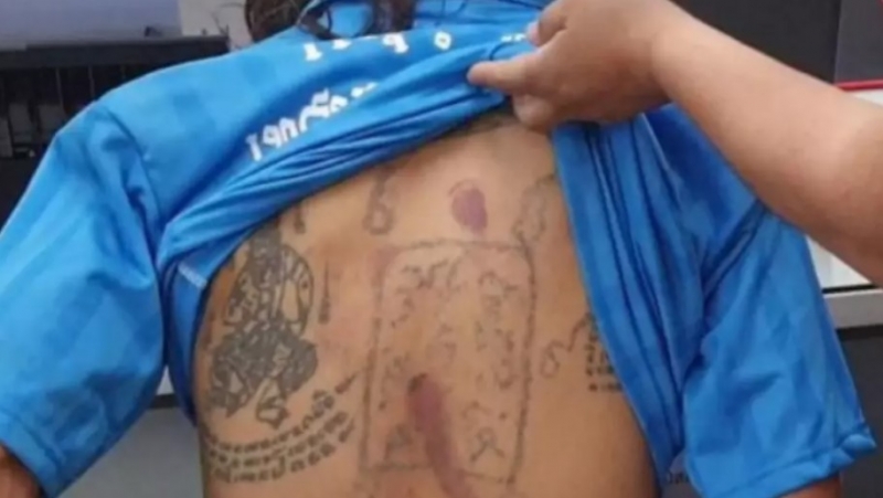 โดยหลังจากนั้นไม่นานก็เกิดความสงสัยในหมู่เจ้าหน้าที่และผู้อยู่ในเหตุการณ์เป็นอย่างมากเพราะ นายอิธิพล อิ่มผึ่ง หรือ ไอ้แจ๊ค อายุ 31 ปี ตรวจปัสสาวะไม่พบว่าว่ามีสารเสพติดผิดกฎหมายใดๆ ทั้งยังพูดจารู้เรื่องเป็นปกติไม่ได้มีปัญหาทางจิตเวชอย่างที่หลายคนสงสัย เมื่อเปิดหลังไอ้แจ๊คดูจึงได้รู้ว่ามีรอยสักหนุมานเก้ายอด ลงอักขระเลขยันต์จากหมอไสยศาสตร์เขมร จึงได้เชิญให้อาจารย์เต มาถอนวิชาอาคม