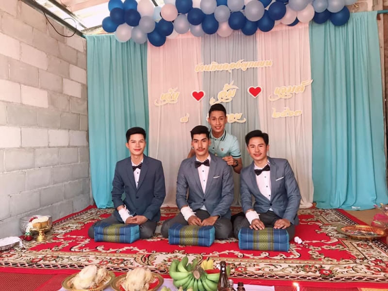 เรียกได้ว่าเป็นอีกหนึ่งเรื่องราว ที่สร้างความฮือฮาอย่างมากในโลกออนไลน์ เมื่อวันที่ 8 ธันวาคม ผู้ใช้เฟซบุ๊กชื่อ Chatchai Ketpradit ได้มีการโพสต์ภาพหนุ่มหล่อทั้งสามคน ที่กำลังเข้าพิธีแต่งงานพร้อมกันอย่างชื่นมื่น ท่ามกลางแขกและเพื่อนๆที่มาแสดงความยินดี เป็นภาพที่บอกเลยว่าไม่ได้มีให้เห็นกันบ่อยๆ ซึ่งหลังจากที่ได้มีการโพสต์ภาพออกไป ก็มีชาวโซเชียลเข้ามาแสดงความยินดีกันเป็นจำนวนมาก ว่าแต่คงมีสาวๆไม่น้อย ที่เสียดายหนุ่มเหล่านี้อย่างแน่นอน