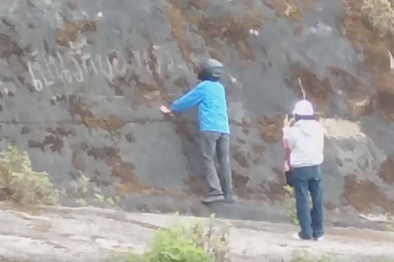 โผล่มอบตัวแล้ว หนุ่มเขียนบอกรัก บนผนังดอยอินทนนท์