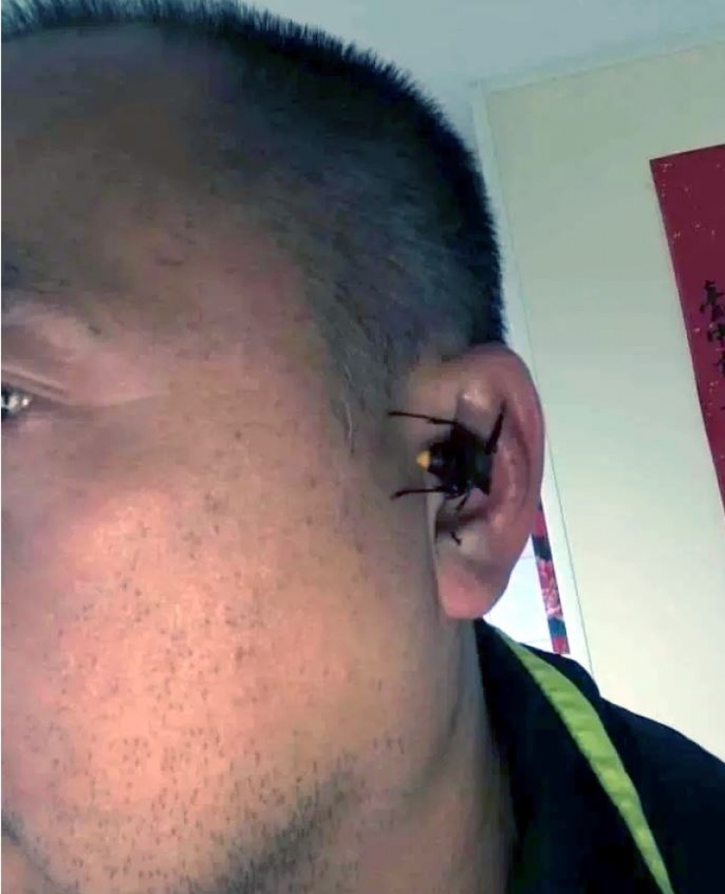 หนุ่มทนให้แตนยักษ์แทะหู 5 นาที ไม่กล้าปัดออกเพราะขึ้นชื่อพิษคร่าชีวิตคนได้
