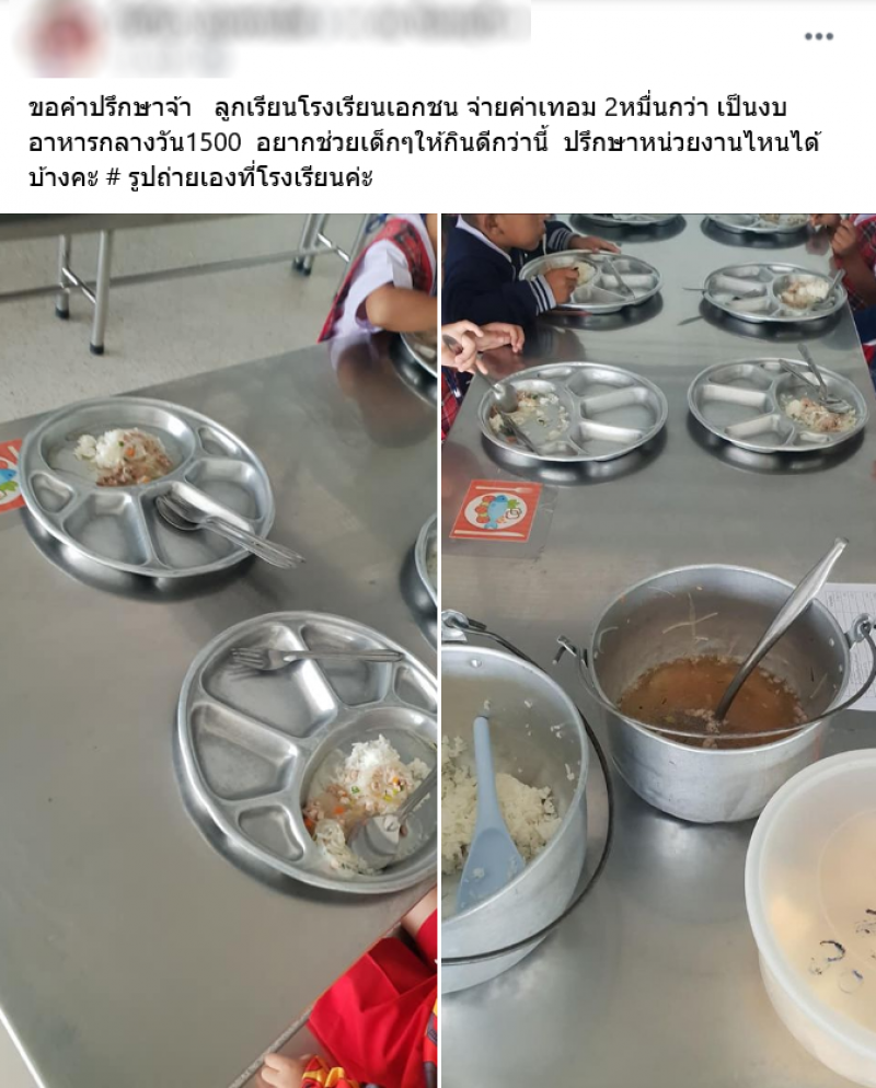 ขอคำปรึกษาจ้า ลูกเรียนโรงเรียนเอกชน จ่ายค่าเทอม 2หมื่นกว่า เป็นงบอาหารกลางวัน1500 อยากช่วยเด็ กๆ ให้กินดีกว่านี้ ปรึกษาหน่วยงานไหนได้บ้างคะ รูปถ่ายเองที่โรงเรียนค่ะ