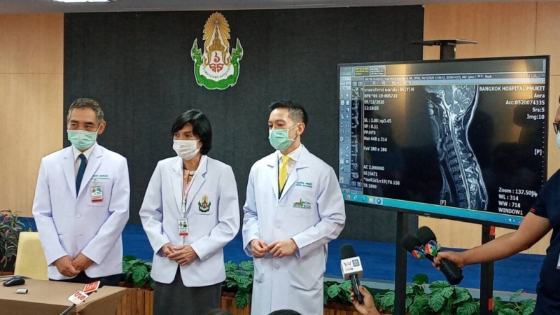 โดยเมื่อเวลา16.30น. ของวันที่ 14 ธ.ค. 63 ทีมคณะแพทย์ของ รพ.พระมงกุฏ นำโดย1. พันเอกหญิง ปริยนันทน์ จารุจินดา รองผู้อำนวยการโรงพยาบาลพระมงกุฎเกล้า 2.พันเอก ทิพชาติ บุณยรัตพันธุ์ ผู้อำนวยการกองออร์โธปิดิกส์ โรงพยาบาลพระมงกุฎเกล้า 3.พันโท ปวิณ คชเสณี ศัลยแพทย์โรคกระดูก โรงพยาบาลพระมงกุฎเกล้า ได้แถลงข่าวชี้แจงอาการของ ตูน บอดี้สแลม ณ ห้องห้องประชุมมรูสุวรรณ ชั้น 5 อาคารเฉลิมพระเกียรติ 6 รอบ รพ.พระมงกุฏ